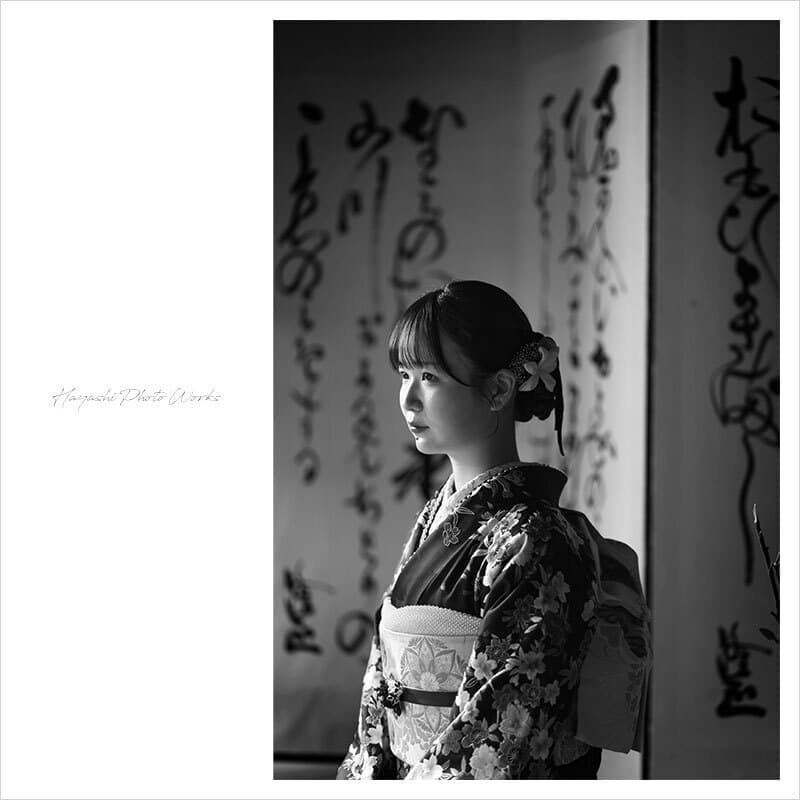 最近よく目にするのは、七五三の様なハタチの振袖写真です。七五三の撮影と、振袖のハタチのお写真が、同じであっていいはずがありません。特別なお着物である振袖と、二十歳のお嬢さんの魅力を活かす為には、光と自然を生かした本格的なロケーション撮影でなければならないと思います。