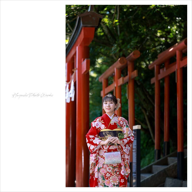 最近よく目にするのは七五三の様なハタチの振袖写真・・・ 七五三撮影と振袖撮影が、同じであっていいはずがありません。特別なお着物である振袖と、二十歳のお嬢さんの魅力を活かす為には、光と自然を生かした本格的なロケーション撮影でなければならないと思います。